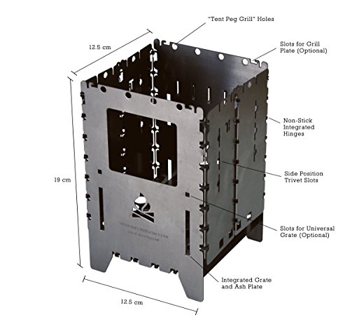 特徴は煙突効果による燃焼効率の高さとチタン素材による携帯性の高さ(重量:約500g)です。