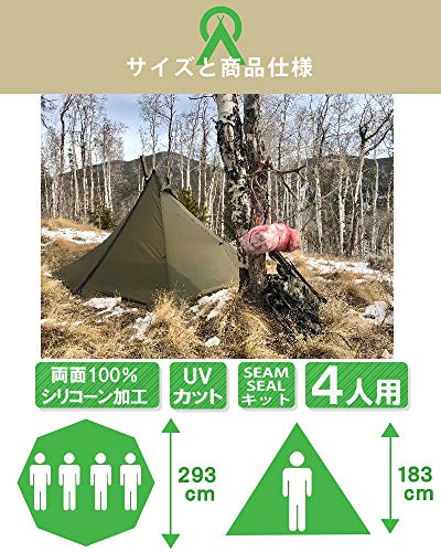 特徴は難燃性の素材(ポリコット)を使っているため、火の粉に強く近くで焚火をしてもテントに穴が空く心配がありません。
